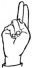 На ћирилици написано БУДИМИР БАЧЕВИЋ састоји се из 14 слова [?]. Исписано ћириличном једноручном азбуком за глувонеме: